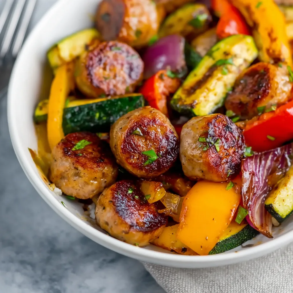 This recipe is proof that dinner doesn’t have to be complicated to be good. In just 10 minutes, you get juicy, browned chicken sausage paired with tender-crisp vegetables, lightly seasoned and roasted to perfection. No stovetop juggling. No oven preheat. Just one bowl, one air fryer basket, and a meal that checks every box.