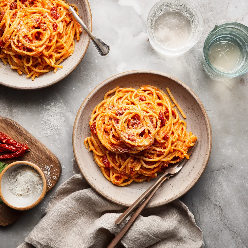 It’s vibrant. It’s velvety. It’s deeply flavorful. And it comes together faster than it takes to boil pasta. Made with roasted red peppers, garlic, cream, and Parmesan, this sauce is rich without being heavy, cozy without being complicated.