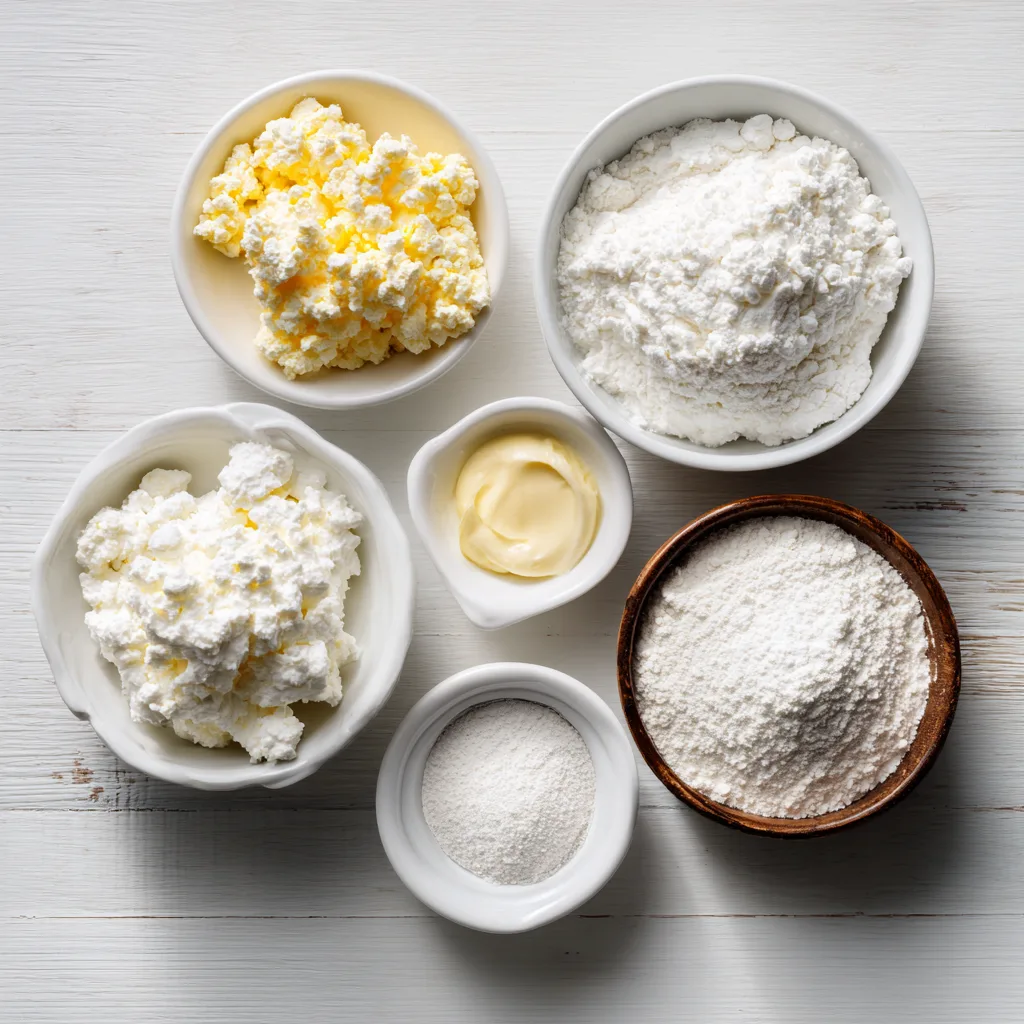 - Mix cottage cheese, flour, and baking powder into a dough.