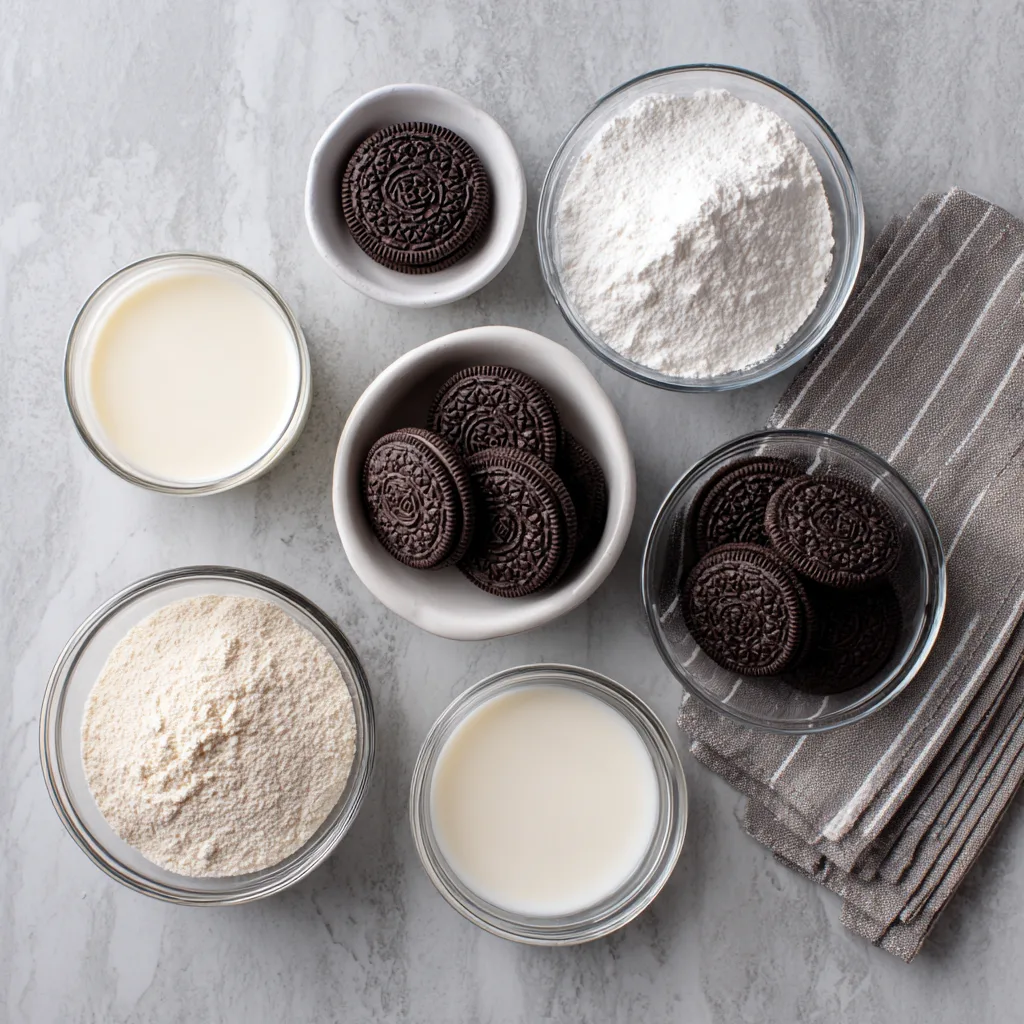 Oreos already contain flour, cocoa, sugar, and fat — meaning they behave almost like a complete baking mix once crushed. When combined with sweetened condensed milk, the crumbs hydrate into a thick batter, while baking powder gives just enough lift to create a cake-like texture instead of something dense or gummy.