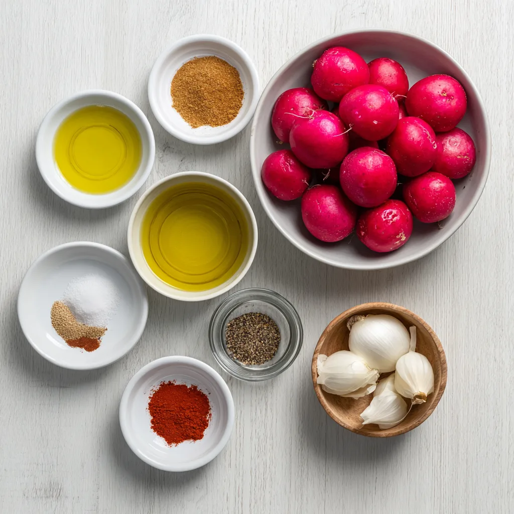 - Toss radish slices with olive oil, garlic powder, onion powder, smoked paprika, salt, and pepper.