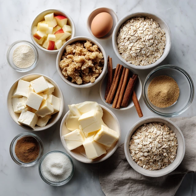 - For the crisp topping, combine oats, flour, brown sugar, cinnamon, and salt. Cut in cold butter until crumbly. Sprinkle evenly over the apple layer.