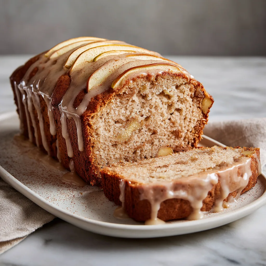 A moist and warmly spiced apple loaf cake topped with a sweet cinnamon glaze—perfect for fall baking.