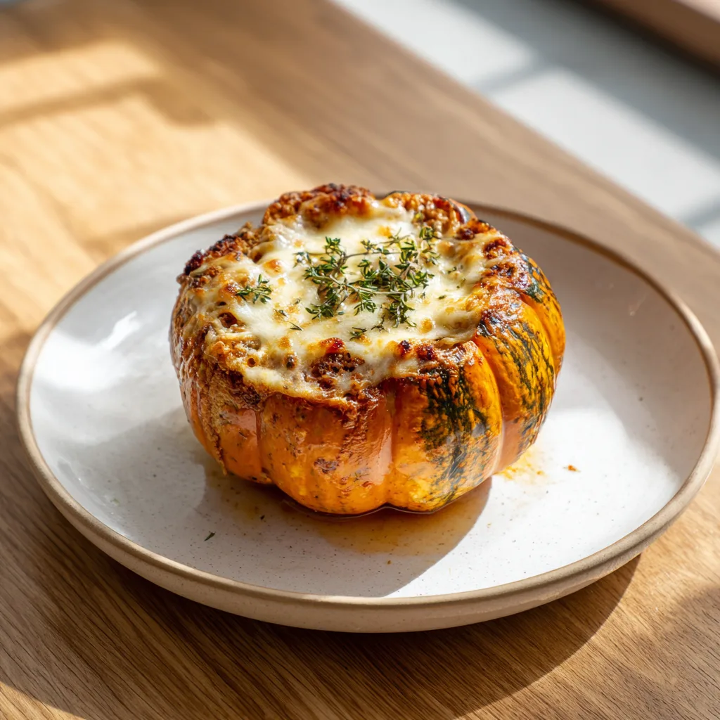 - Final bake: Return stuffed pumpkins to oven and bake for 20 minutes until cheese is melted and bubbly.