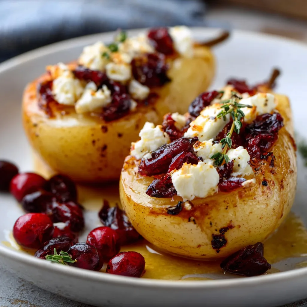 Imagine slicing into a tender pear that’s been gently roasted, its juices mingling with honey, the salty tang of feta balancing the sweetness, while cranberries add a festive tartness. This dish is more than food—it’s an experience of contrasts: warm and cool, sweet and salty, creamy and chewy.