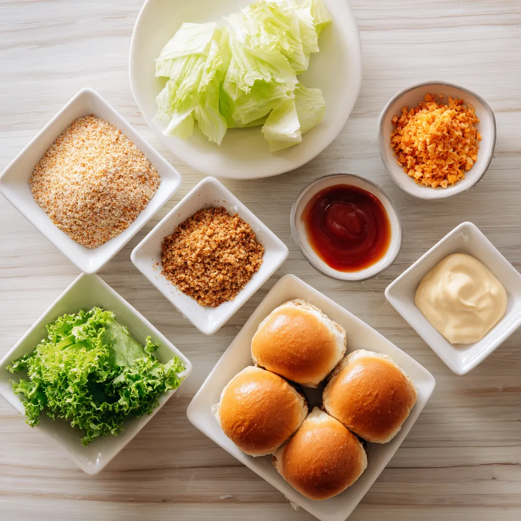 - Assemble Sliders – Toast slider buns lightly. Layer lettuce, crispy chicken, and drizzle generously with bang bang sauce. Top with the other half of the bun.