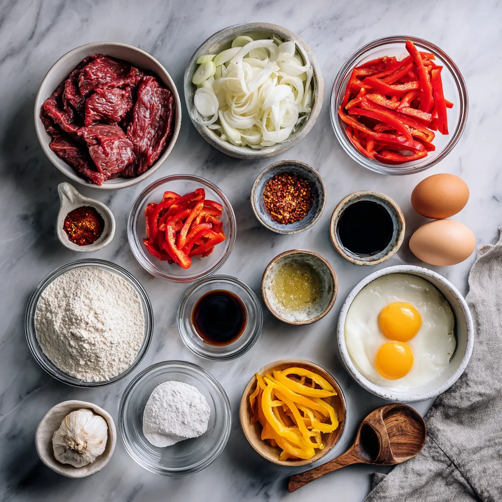 This recipe brings together crispy fried beef, vibrant bell peppers, and a bold sweet-and-tangy sauce that clings to every bite. It’s the perfect balance of crunch, heat, sweetness, and savory depth — and it’s surprisingly easy to make in your own kitchen.