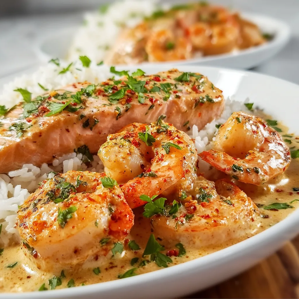 Cajun Shrimp & Salmon with Garlic Cream