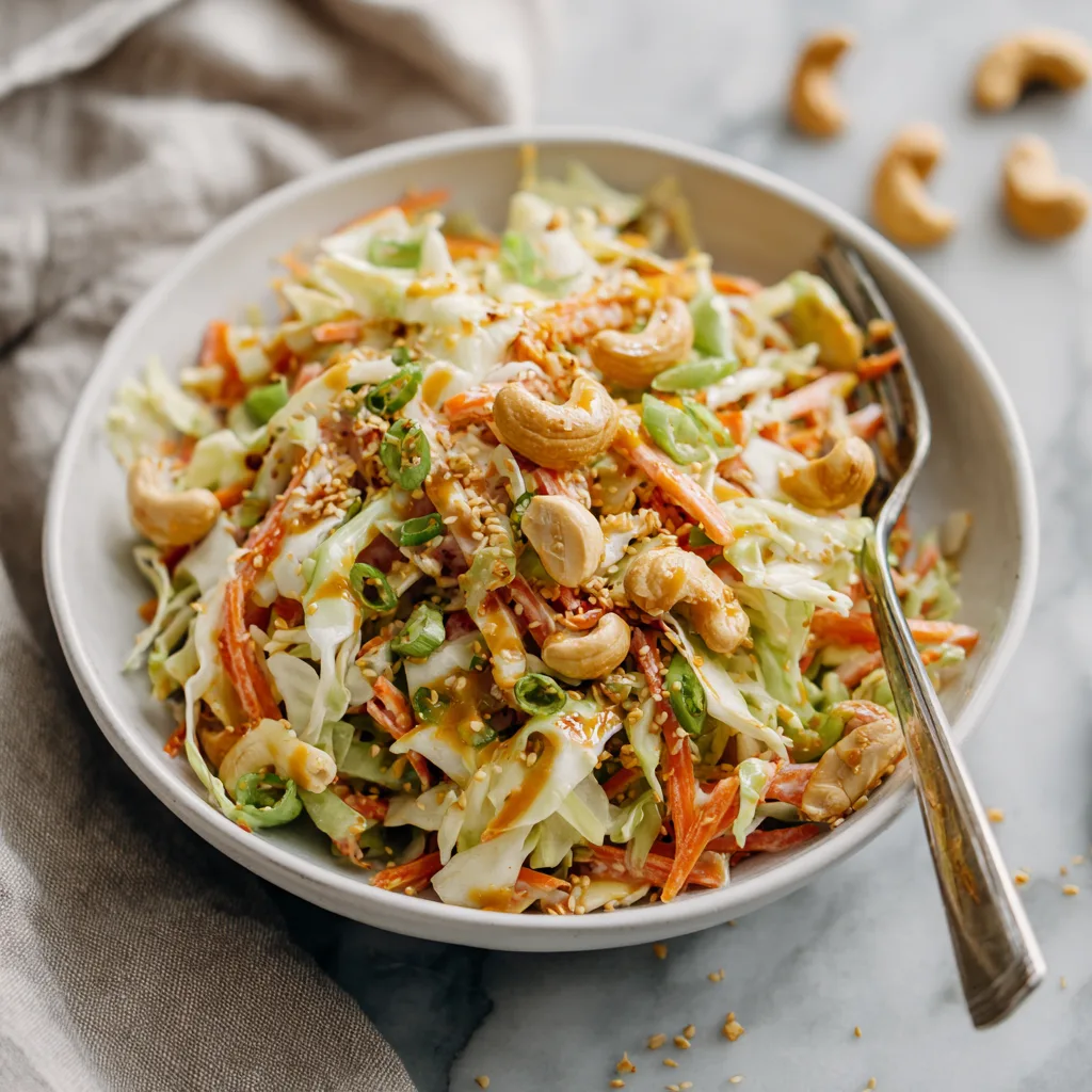 This salad draws inspiration from Asian-style slaws that combine crisp vegetables with sesame-forward dressings. The balance of sweet, tangy, and savory flavors is what makes these slaws so crave-worthy.