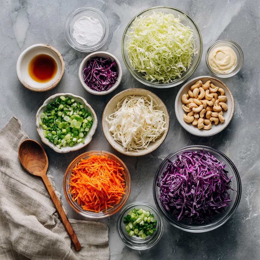 It’s crisp and colorful. It’s creamy yet light. It’s packed with texture in every bite — cool cabbage, sweet carrots, fresh green onions, and buttery roasted cashews. And that dressing? Tangy, slightly sweet, and just savory enough to keep you coming back for “one more scoop.”