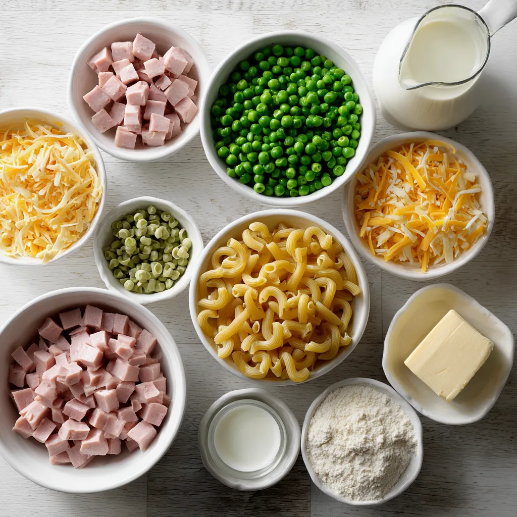 The result is a creamy, cheesy casserole with just the right balance of textures—soft pasta, hearty ham, and bright peas that cut through the richness beautifully.