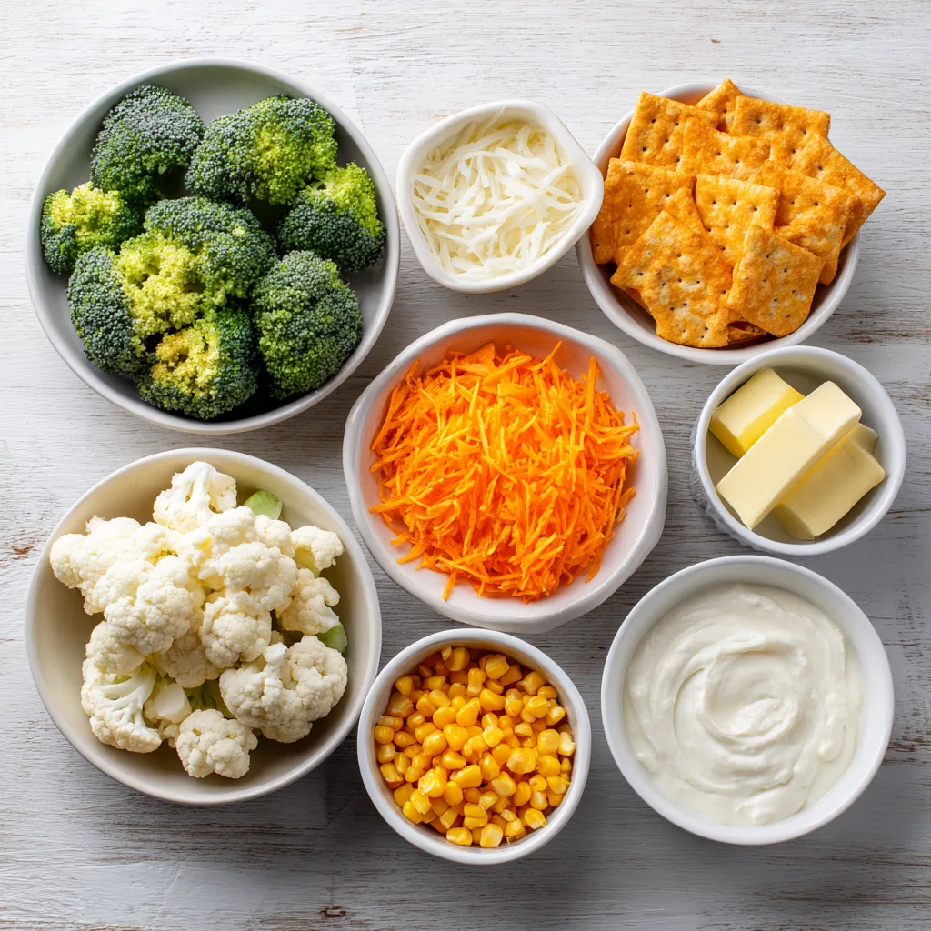 What makes this casserole so special is how effortlessly it transforms everyday vegetables into something crave-worthy. Tender broccoli, cauliflower, carrots, and corn are folded into a creamy, cheesy sauce that coats every bite. As it bakes, the sauce thickens, the cheese melts, and the top turns golden and bubbly. A buttery cracker topping adds just the right amount of crunch, creating that irresistible contrast between creamy and crisp.