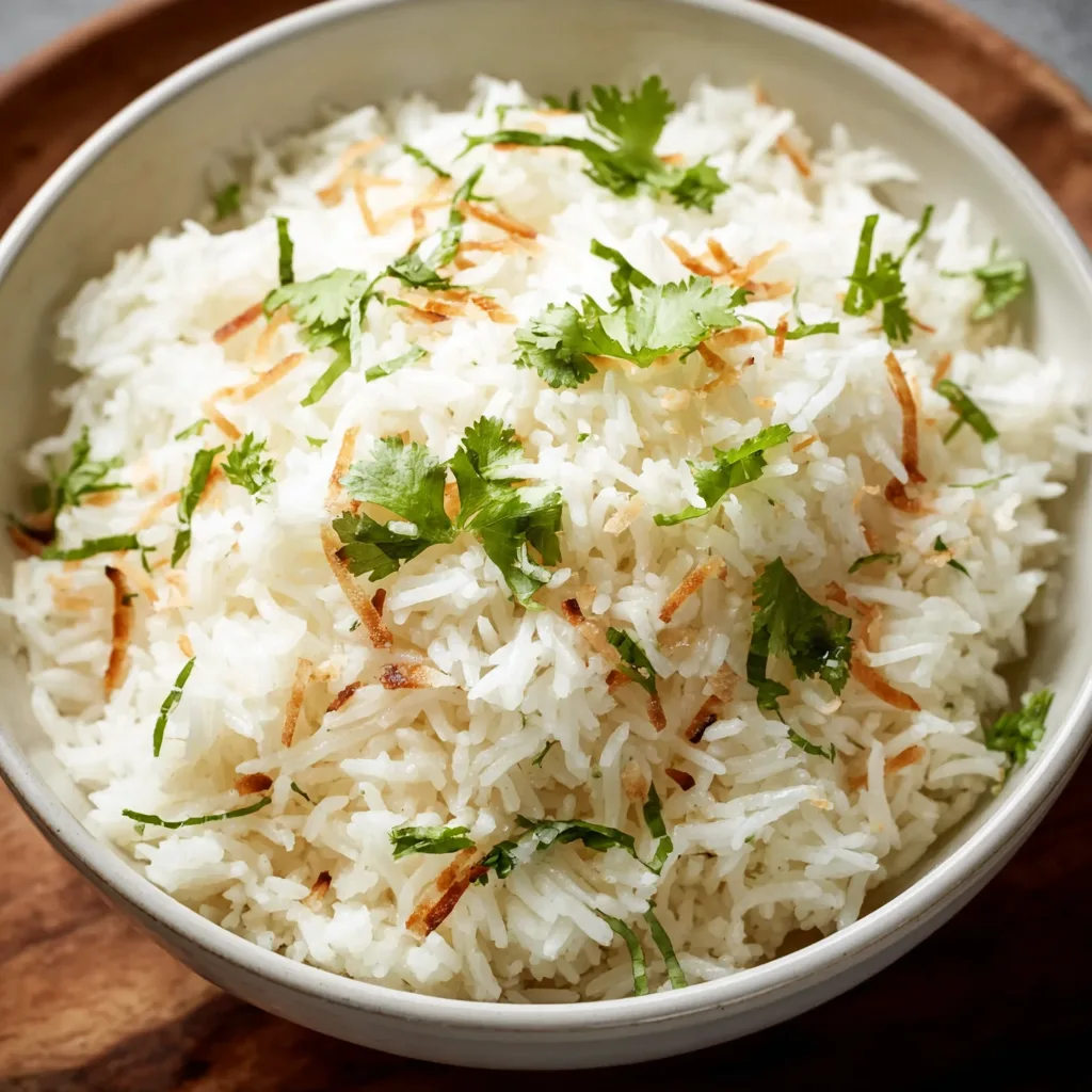 As the rice simmers, your kitchen fills with that unmistakable coconut aroma, warm and comforting. When you finally fluff the rice with a fork, each grain separates beautifully, glossy from the coconut milk, tender but never mushy. It’s the kind of dish that looks simple on the plate but delivers big on flavor.
