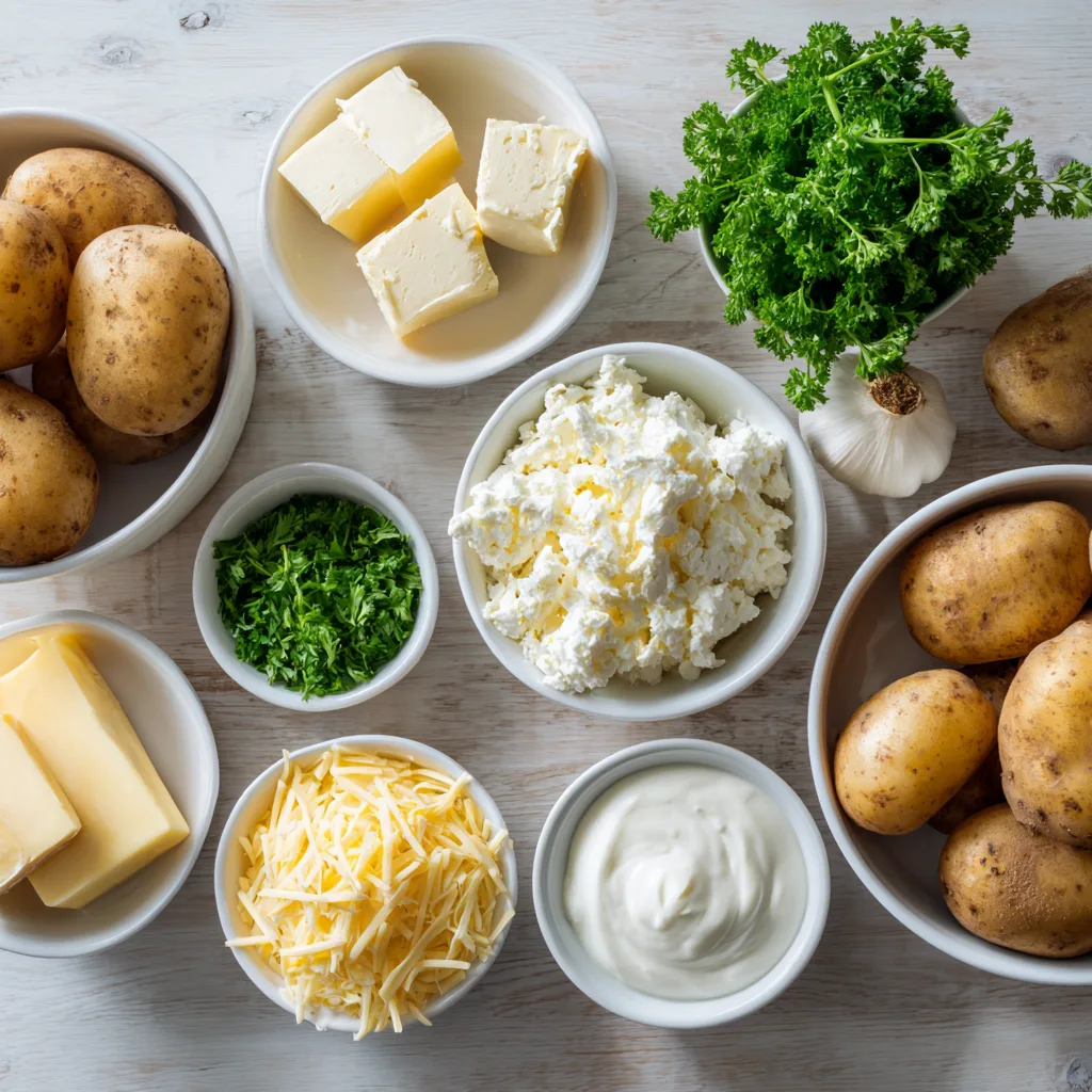 - Repeat with remaining potatoes, cream mixture, and cheeses.