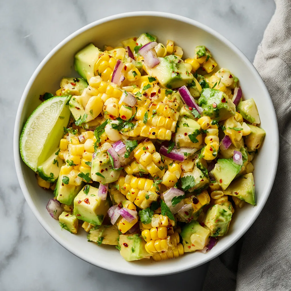A fresh, vibrant salsa made with sweet corn, creamy avocado, and zesty lime juice.