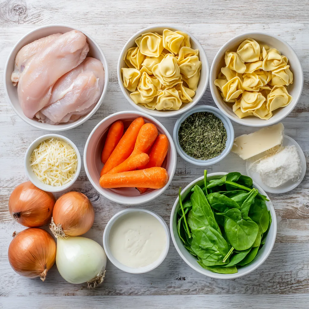 A rich and cozy soup made with tender chicken, cheese tortellini, spinach, and a creamy Parmesan broth.