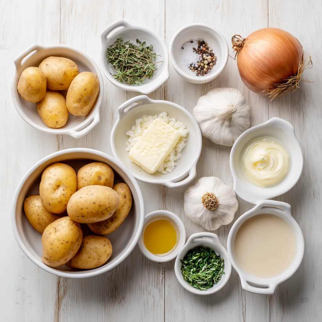 Potatoes have long been a staple in comfort cooking, and when paired with garlic, butter, and cream, they transform into something luxurious without being complicated. This recipe focuses on slow-building flavor—softly sautéed garlic and onions, tender potatoes simmered in broth, and a creamy finish that brings everything together beautifully. The garlic is bold but not overpowering, mellowed by cooking until fragrant and sweet.