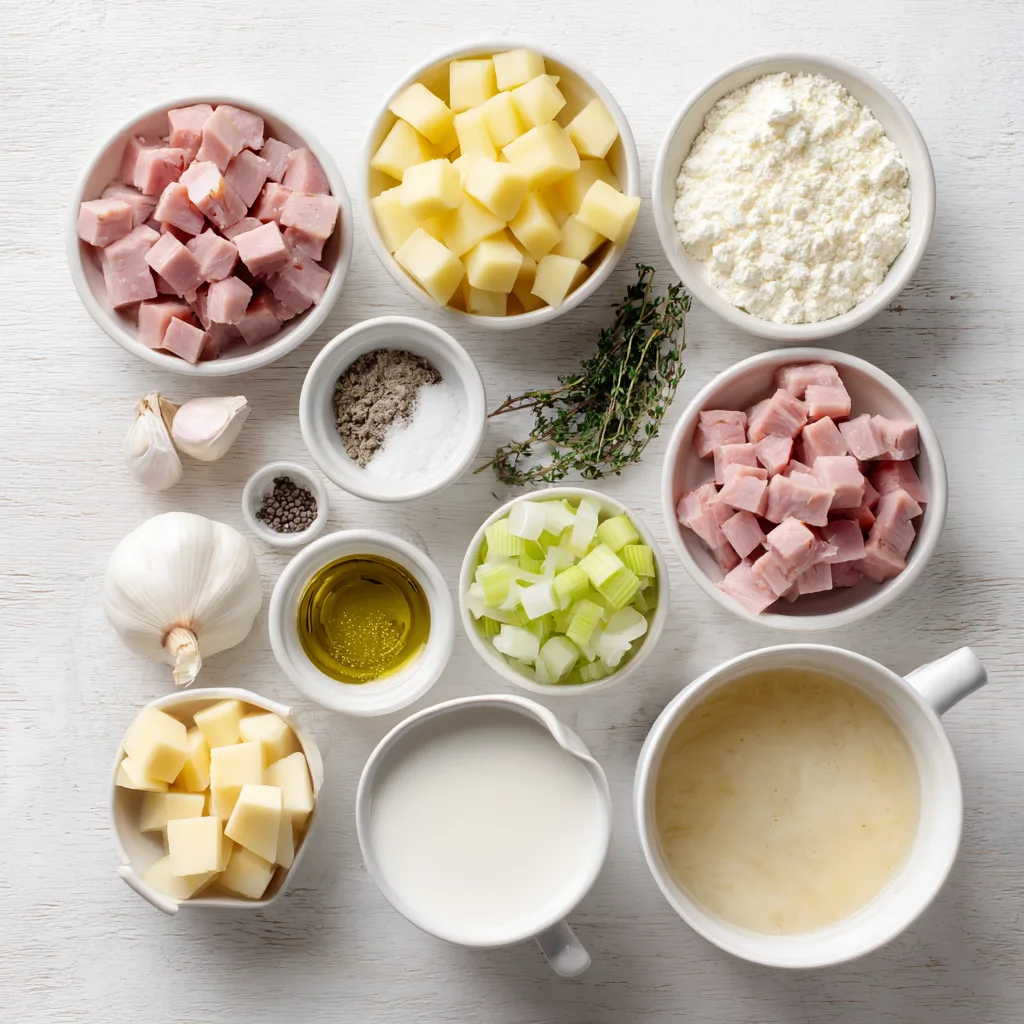 Potatoes are the backbone of this soup, providing natural thickness and a soft, buttery texture that melts in your mouth. As they cook, some of them break down into the broth, creating that signature creaminess even before the dairy is added. The ham brings a salty, savory depth that balances the mild sweetness of the potatoes, while onions, celery, and garlic quietly build layers of flavor underneath it all.