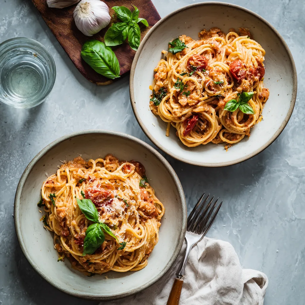 A rich and velvety tomato cream pasta infused with garlic and Parmesan, perfect for a comforting weeknight dinner.