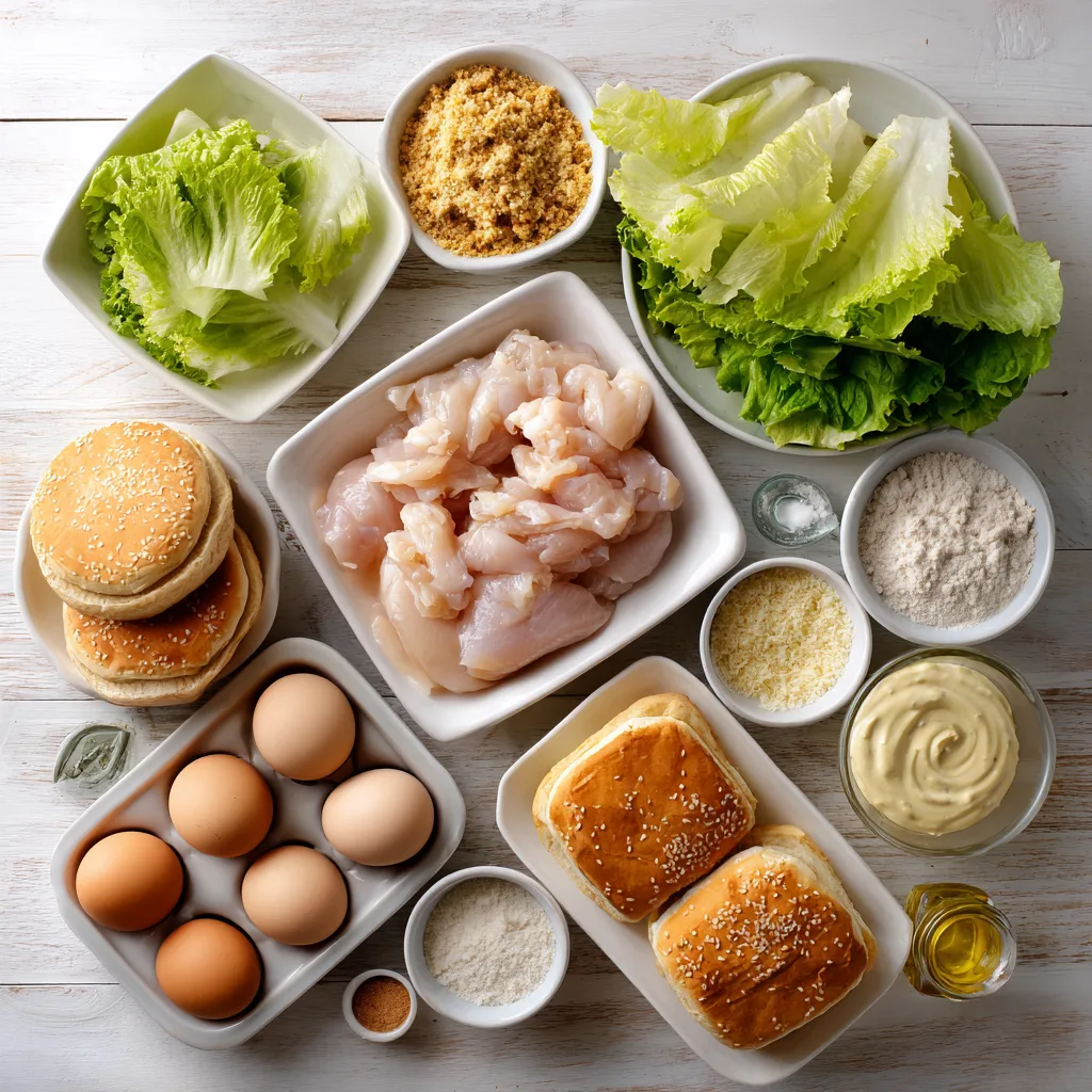 Crispy breaded chicken, romaine lettuce, parmesan cheese, and creamy Caesar dressing layered inside a toasted bun. A crunchy, savory sandwich ready in under 40 minutes.