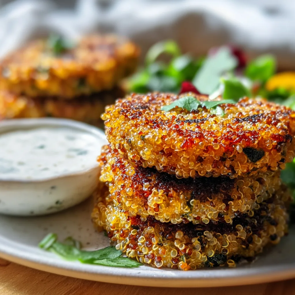 Golden, crispy quinoa veggie patties packed with vegetables and herbs, perfect for healthy meals or snacks.