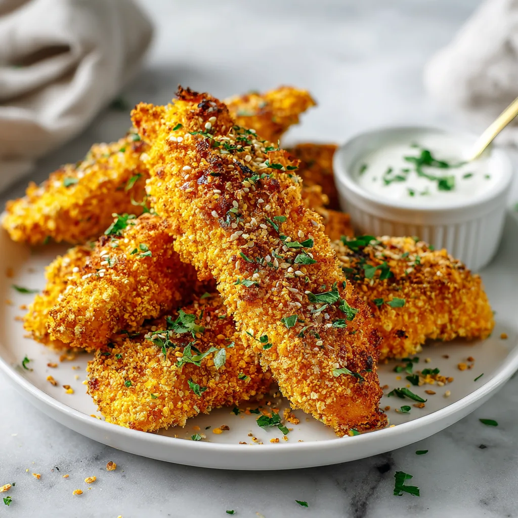 This recipe transforms classic chicken tenders into a healthier, flavor-packed dish without sacrificing the crispy texture everyone loves. Instead of frying, the tenders are baked in the oven until golden and crunchy. The coating is naturally gluten-free, and turmeric adds a warm earthy flavor along with a vibrant golden color.