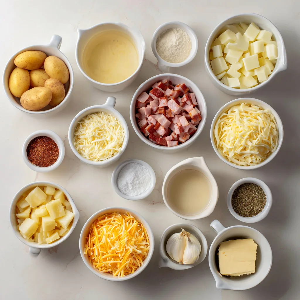 Slow cookers excel at dishes like this because they gently simmer the potatoes until they turn buttery soft without falling apart. That low, steady heat also gives the sauce time to thicken and infuse the potatoes with savory ham flavor, garlic, onions, and melty cheese. It’s the kind of meal you can set in the morning and return to hours later, greeted by the smell of creamy comfort.