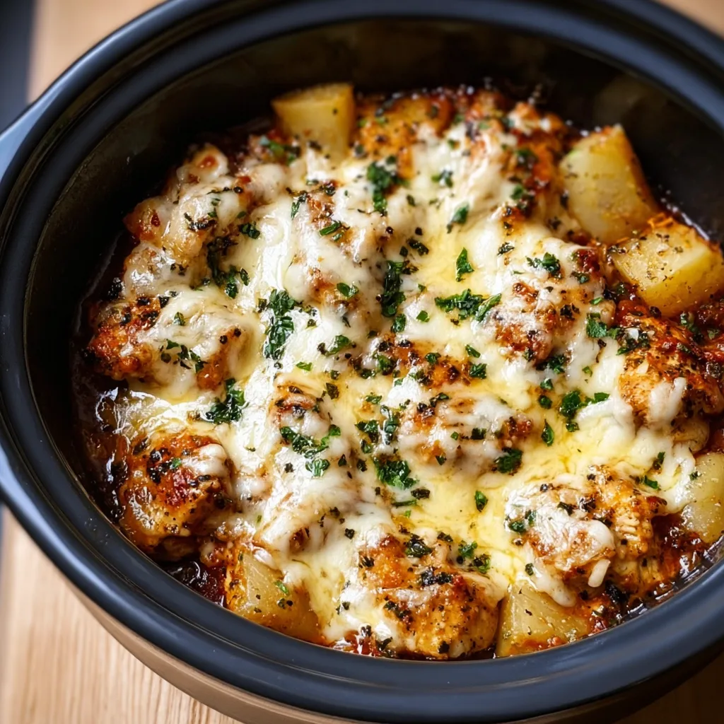 This recipe transforms a traditional favorite into a hands-off, stress-free dinner. Perfect for busy weeknights, meal prep, or even entertaining, the slow cooker ensures the chicken absorbs all the flavor of garlic, herbs, and marinara while staying perfectly tender. When the cooking is done, simply add mozzarella and Parmesan cheese on top for that melty, golden finish everyone loves.