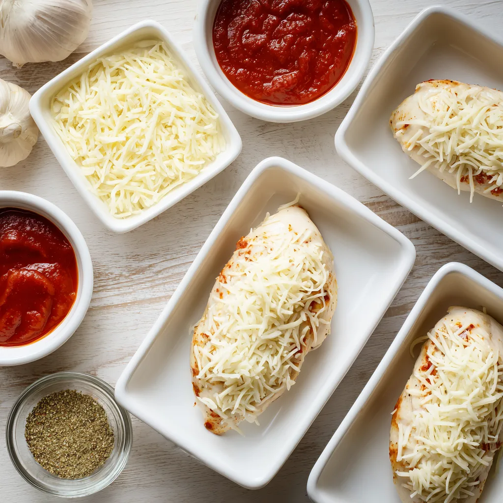 - Add Cheese: Sprinkle mozzarella and Parmesan over the chicken. Optionally, add breadcrumbs for a crusty topping.