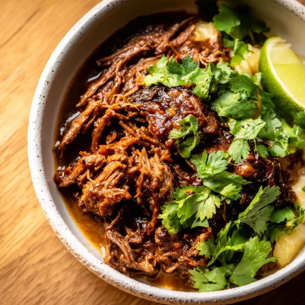 - Slow cook: Cover and cook on Low for 8–9 hours or High for 4–5 hours, until the beef is fork-tender and shreds easily.