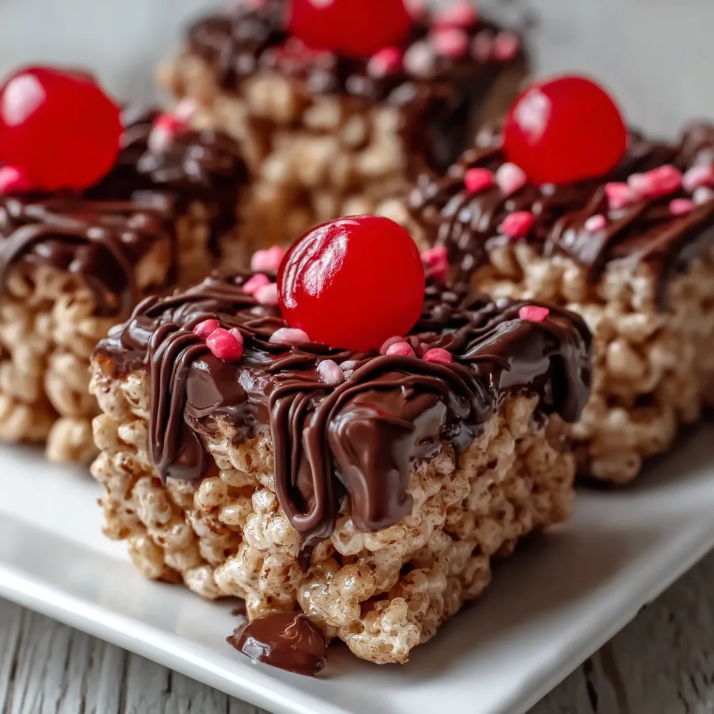 Decadent Chocolate Covered Cherry Rice Krispies Treats