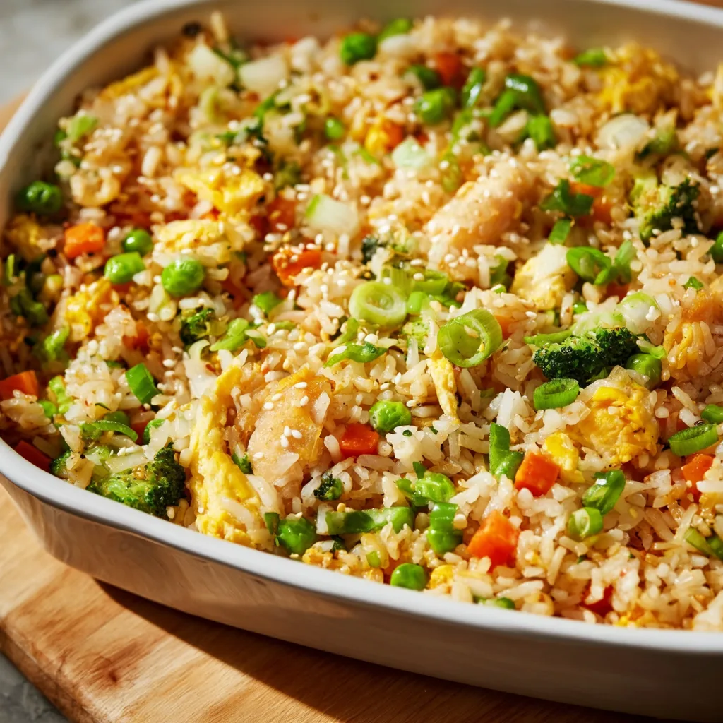 Easy Dump-and-Bake Fried Rice – No Stirring, No Stress, Just Comfort