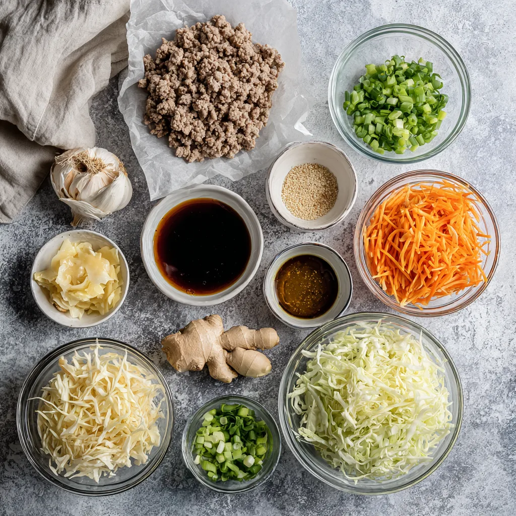 - Ground pork for classic egg roll flavor