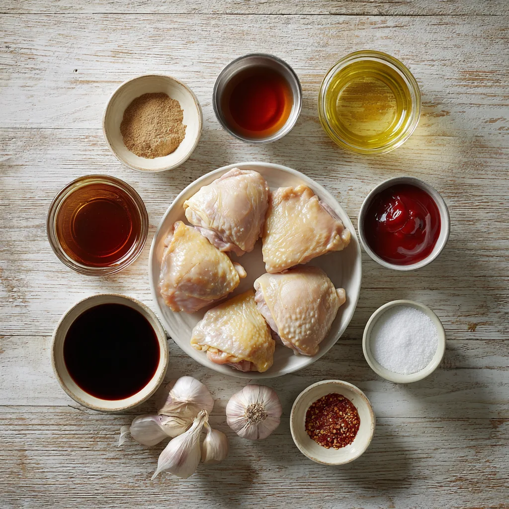 - In the same skillet, add soy sauce, brown sugar, bourbon (or apple juice), cider vinegar, water, ketchup, garlic, ginger, and red pepper flakes.