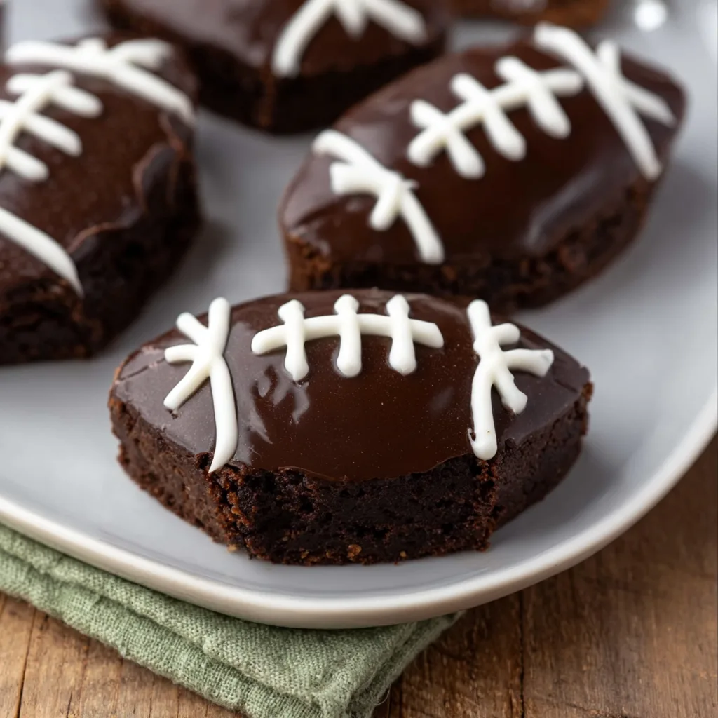 - Shape Footballs: Remove brownies from the tin. Trim edges if necessary to create an oval “football” shape.