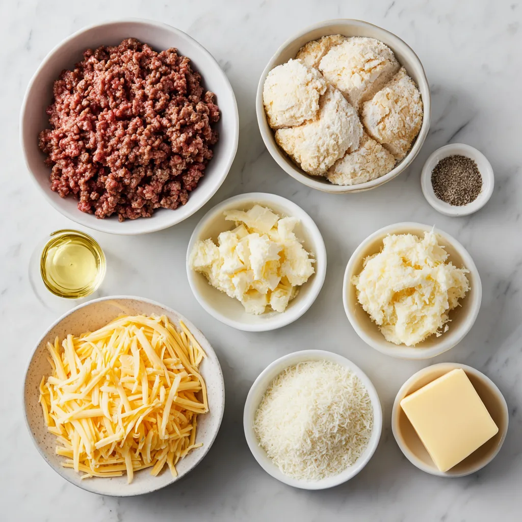 - Prepare Dough: Flatten biscuit dough rounds slightly. Place a spoonful of beef mixture and shredded cheese in the center of each.