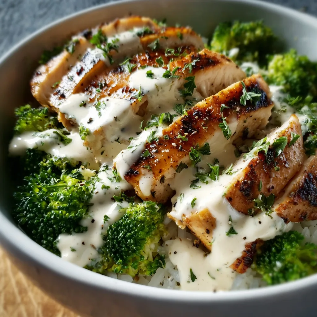 Grilled Chicken & Broccoli Bowls with Creamy Garlic Sauce – Fresh, Flavorful, and Perfect for Any Night