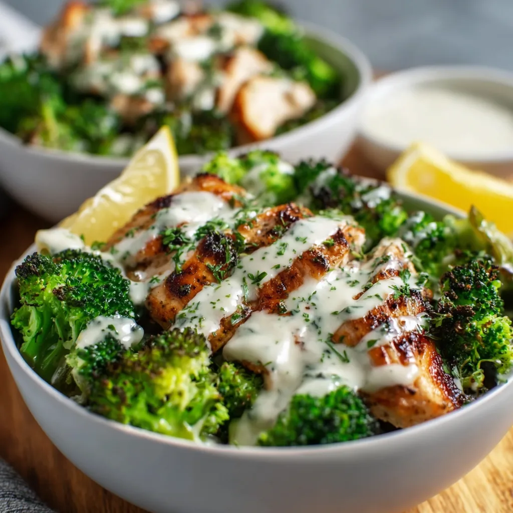 Grilled Chicken & Broccoli Bowls with Creamy Garlic Sauce – Simple, Satisfying, and Meal-Prep Perfect