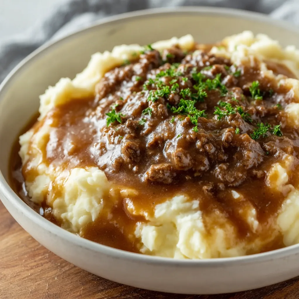 Ground Beef and Gravy Over Mashed Potatoes – The Ultimate Cozy Comfort Bowl