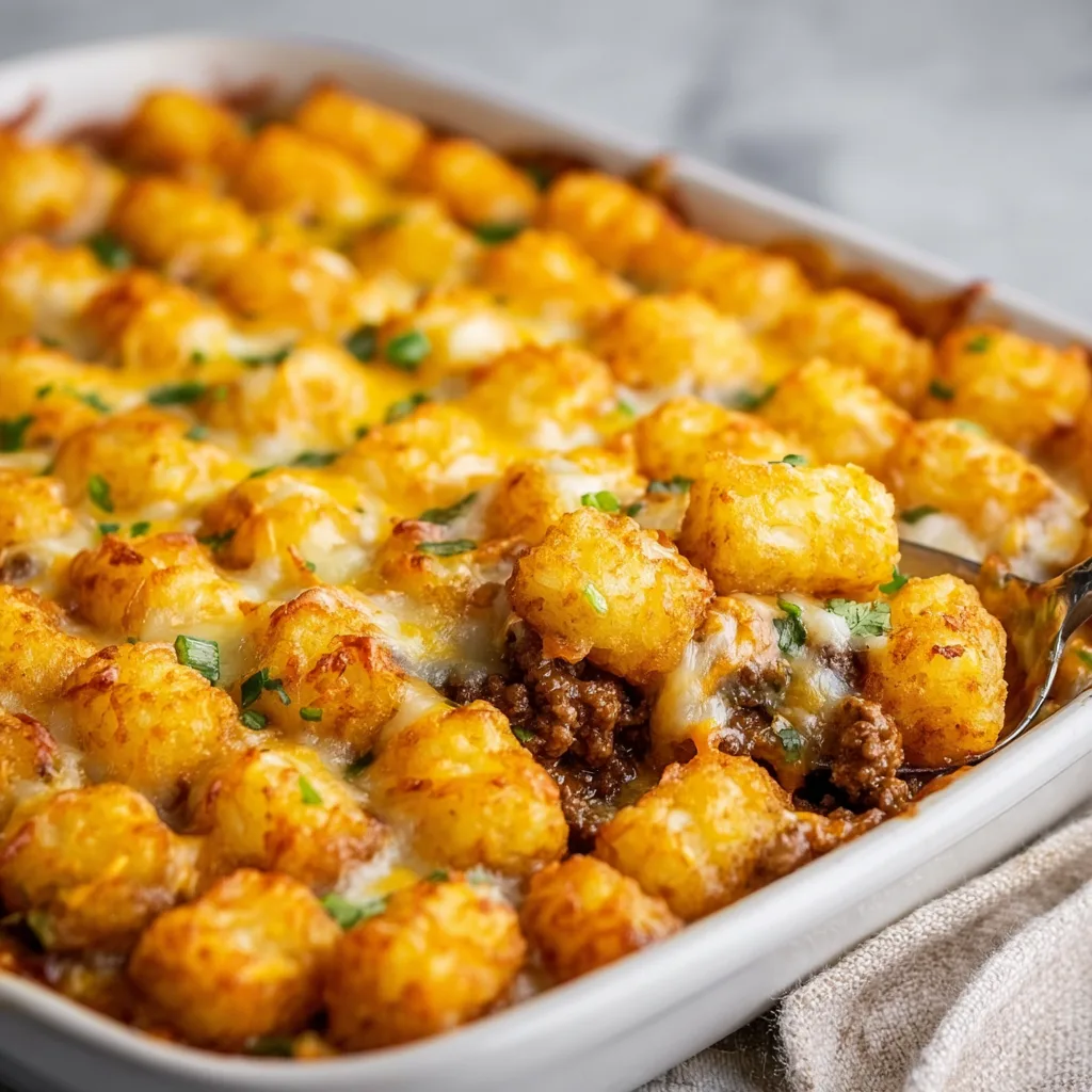 Store leftovers in an airtight container in the refrigerator for up to 4 days. Reheat in the oven or air fryer to keep the tater tots crisp.