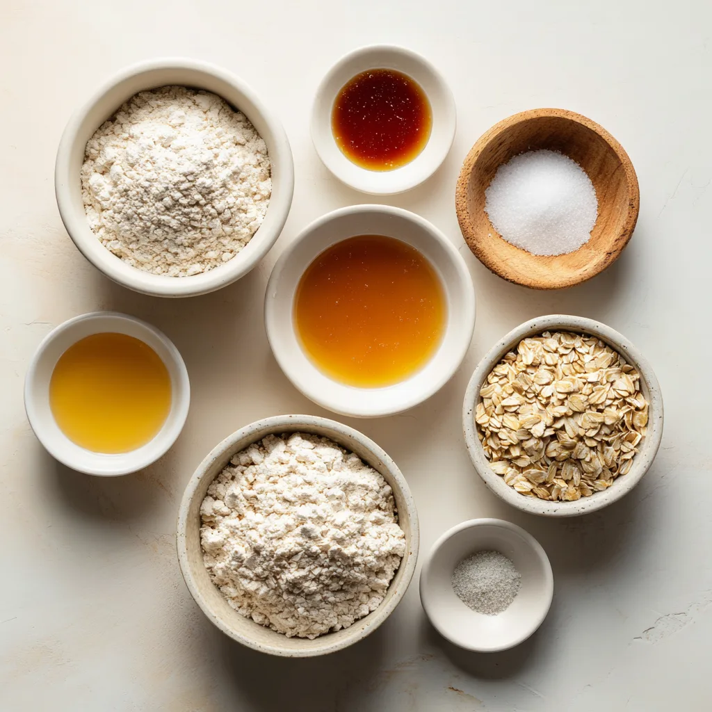 1. Mix water and honey, then add starter, flour, and oats. Rest 30 minutes.