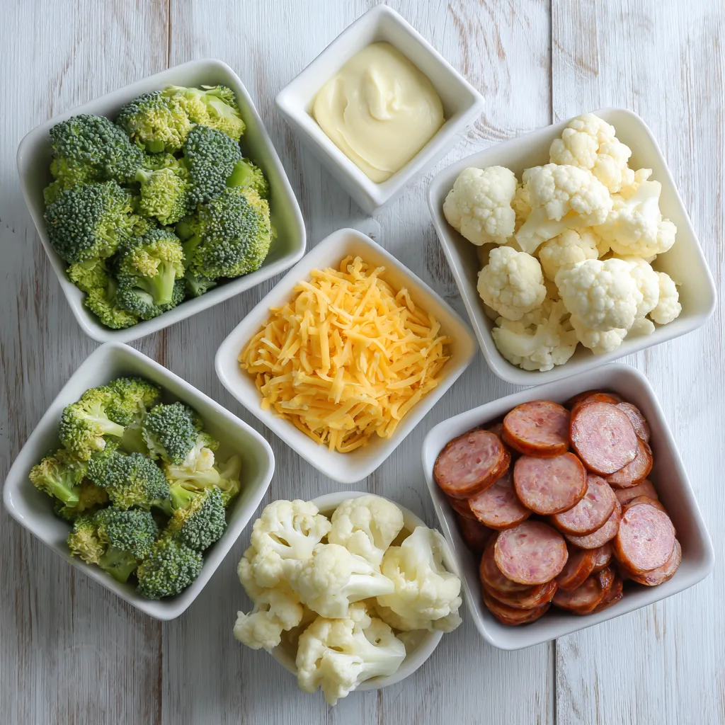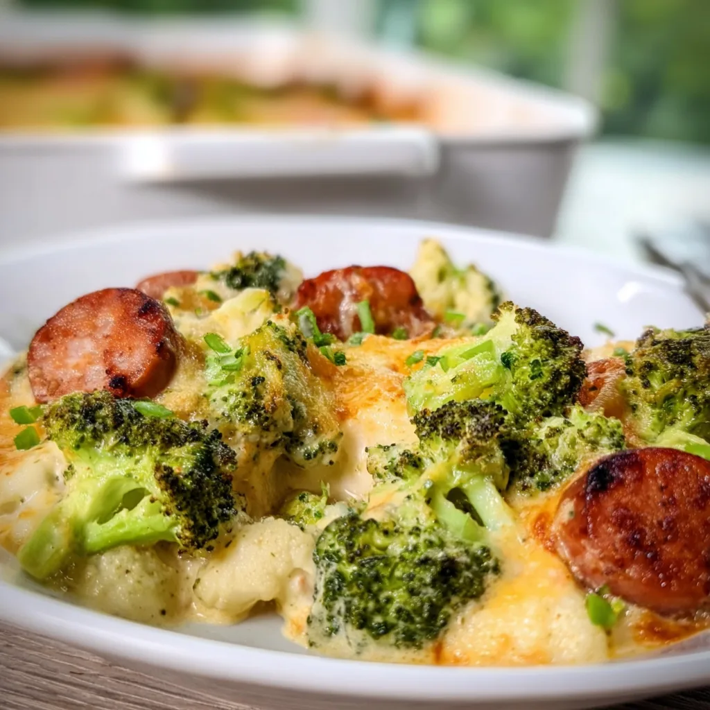 This dish was born out of one of those nights when the fridge seemed nearly empty. A bag of broccoli and cauliflower florets, a package of smoked sausage, and a drawer full of cheese—that’s all it took to create a family favorite. The bubbling cheese, crispy sausage edges, and golden top remind me of the casseroles my grandmother used to make, though hers were often full of breadcrumbs and potatoes. This low-carb version keeps all the comfort while cutting out the carbs, and honestly? I don’t miss the starch one bit.