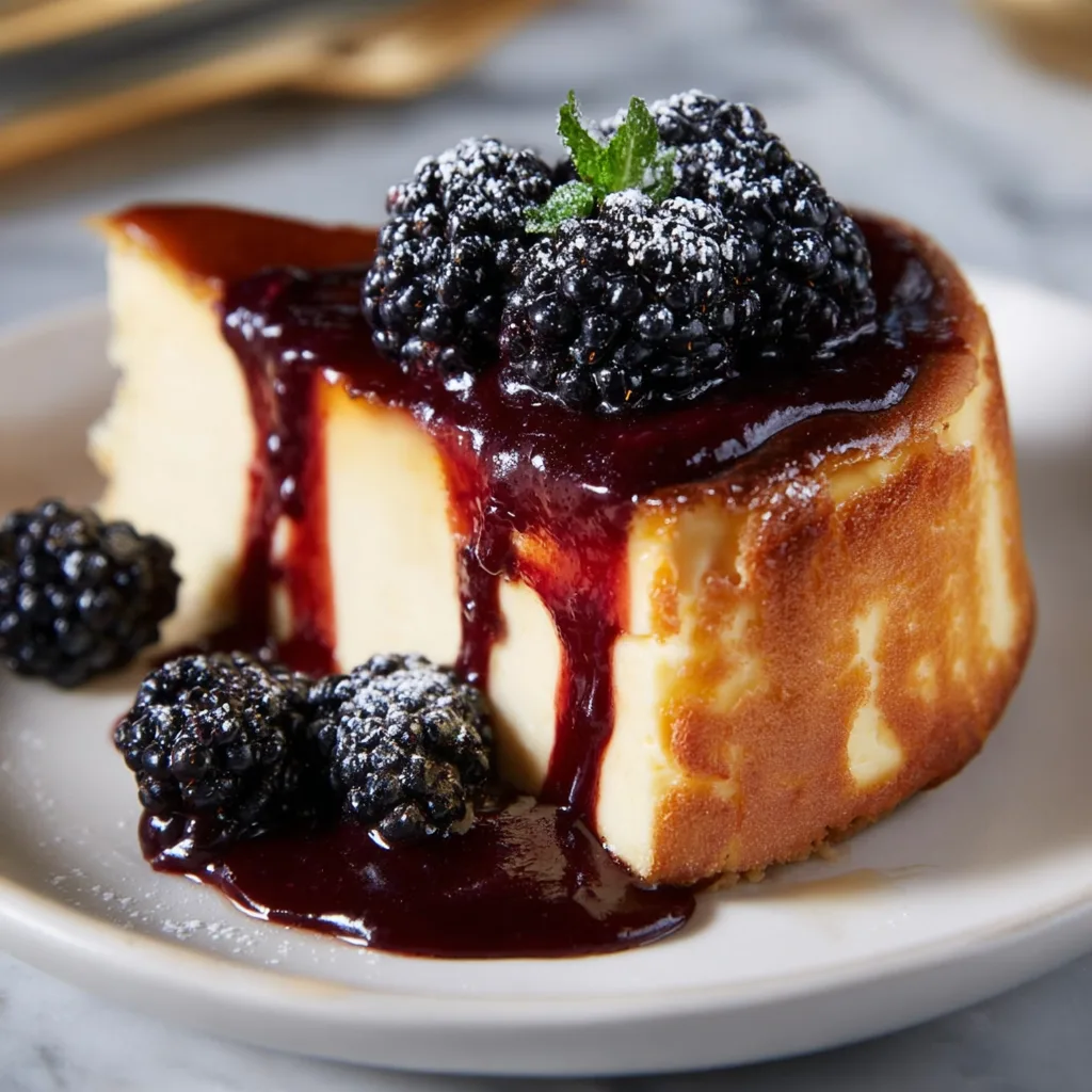 London Fog Basque Cheesecake with Blackberry Sauce – A Tea-Infused Dessert Dream