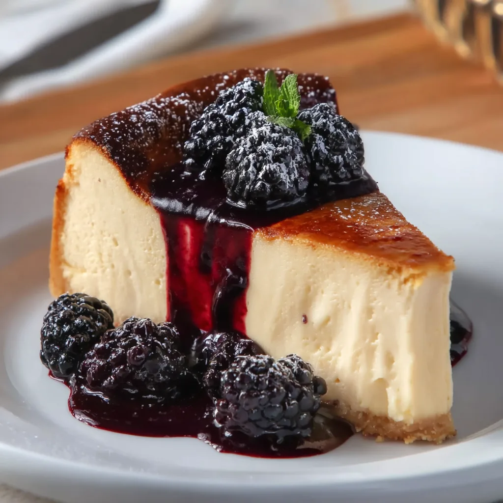 London Fog Basque Cheesecake with Blackberry Sauce – A Tea-Infused Dessert Dream