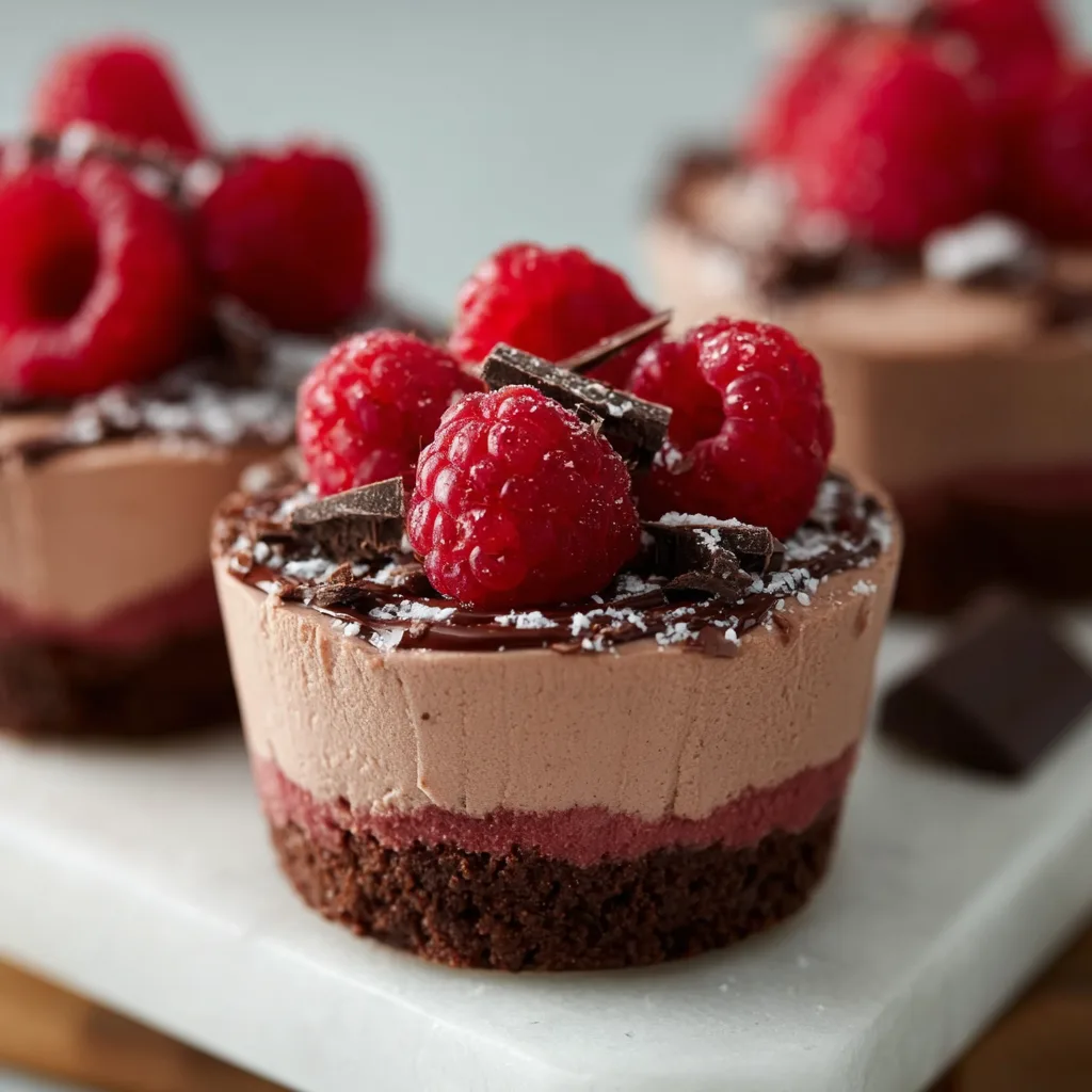 Chocolate mousse originated in France and became popular for its light yet luxurious texture. Raspberry and chocolate became a classic pairing thanks to their natural contrast—rich cocoa notes balanced by bright fruit acidity. This modern no-bake version brings timeless flavors into an easy, home-friendly dessert.