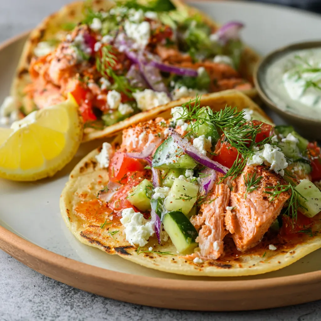 Mediterranean Style Salmon Tacos – Fresh, Bright, and Packed With Coastal Flavor