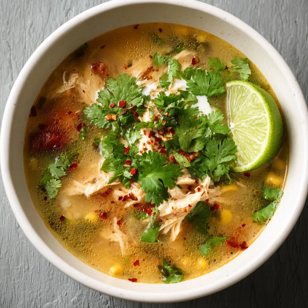 A bright, flavorful Mexican-inspired chicken soup with vegetables, spices, lime, and fresh cilantro.