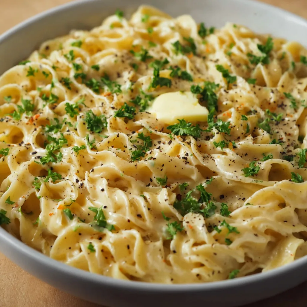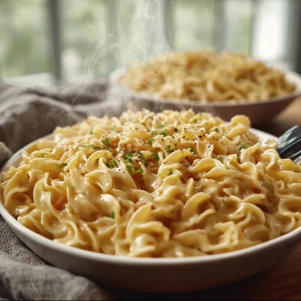 These noodles aren’t fancy. They don’t rely on trendy ingredients or complicated techniques. Instead, they shine because of their simplicity. Tender egg noodles are coated in a silky, lightly seasoned cream sauce that feels warm and familiar. It’s the kind of food moms made when money was tight, time was short, but love was always abundant.
