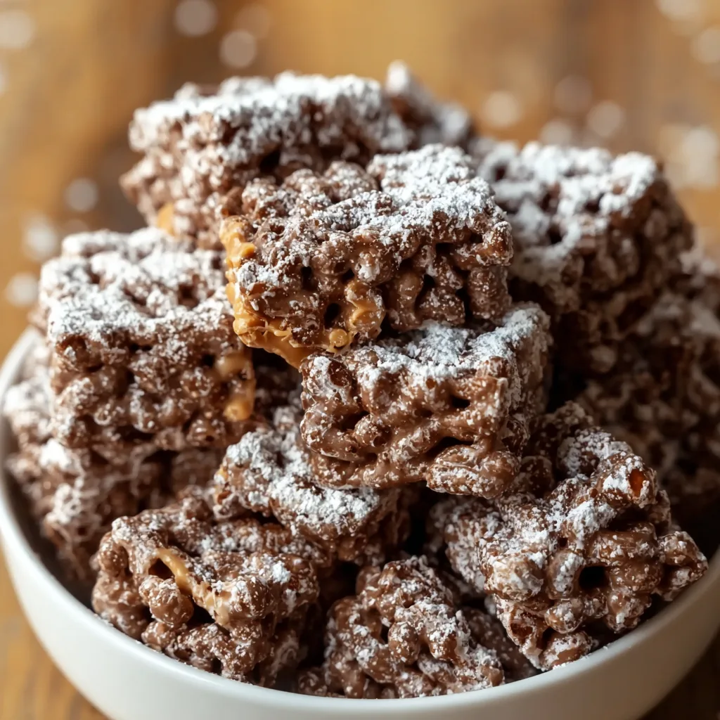 Muddy Buddies, also known as puppy chow, originated in the Midwest and became popular as a no-bake snack for gatherings and holidays. This Rice Krispies variation puts a modern twist on the classic, offering a lighter crunch while keeping the iconic chocolate-peanut butter flavor combination everyone loves.