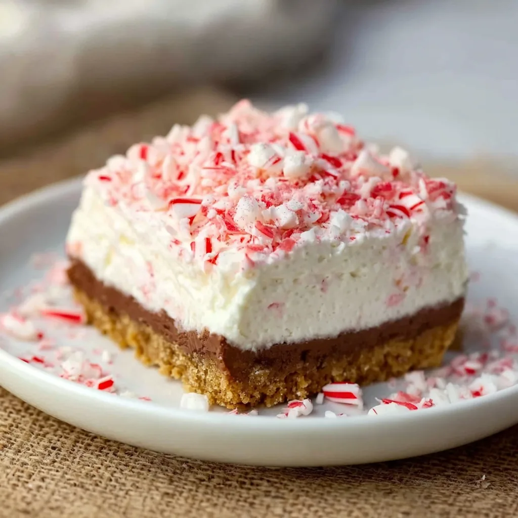 - Garnish and Serve: Before serving, sprinkle extra crushed candy canes on top for a festive touch. Slice and enjoy!